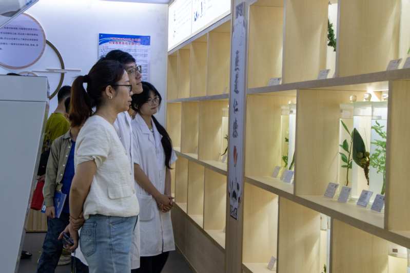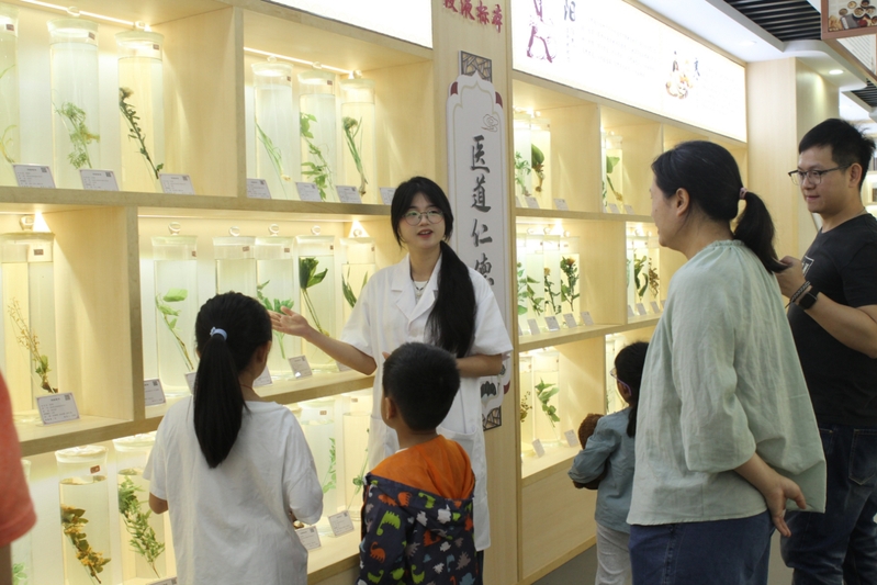 踏入中醫(yī)藥標(biāo)本館,隨著科普講解員的引導(dǎo),參觀者首先體驗(yàn)了自助購藥及虛擬配藥系統(tǒng),從實(shí)踐中領(lǐng)略了藥材的多樣性。隨后,通過觀察浸制標(biāo)本、臘葉標(biāo)本等,讓參觀者深入了解常用藥材的特征及功效,通過四維影像動(dòng)態(tài)展示常見中草藥從“種子”到“成熟”的全過程,向參觀者普及藥食同源的健康飲食理念。利用VR虛擬采藥、AR藥圃展示、配藥體驗(yàn)等互動(dòng)方式,拉近中醫(yī)藥與參觀者的距離,加深了大家對(duì)中醫(yī)藥文化的理解與認(rèn)同。
