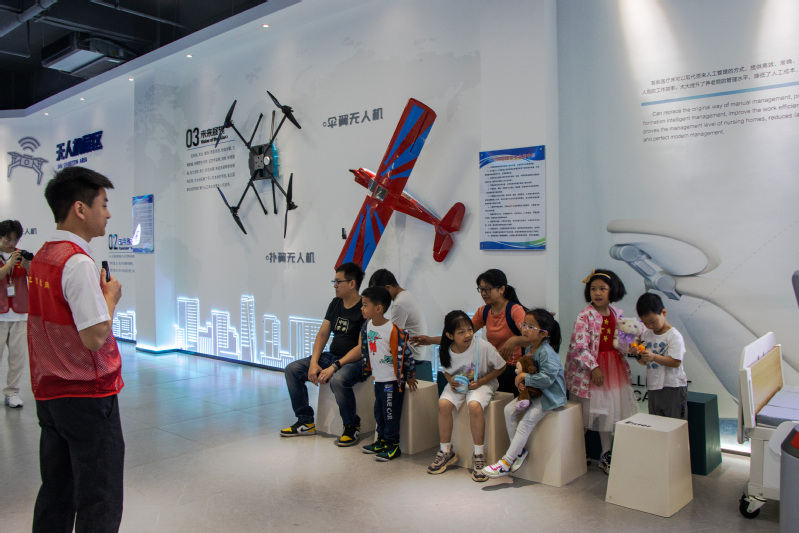 踏入人工智能館,科普講解員以通俗易懂、妙趣橫生的語言闡釋了AI的核心原理,通過與智能語音助手的互動(dòng),揭示了機(jī)器思考的方式。從日常生活中智能化應(yīng)用的實(shí)例出發(fā),拉近了大家與未來科技的距離。為更深入地理解科技的力量,借助VR眼鏡,邀請(qǐng)參觀者體驗(yàn)成為外科專家,沿著血脈經(jīng)絡(luò),虛擬仿真成功完成外科手術(shù)。借助無人機(jī),配合炫彩燈光,觀賞鋼鐵精靈上演的精妙絕倫的空中芭蕾,激發(fā)參觀者對(duì)科學(xué)知識(shí)的興趣與熱情。