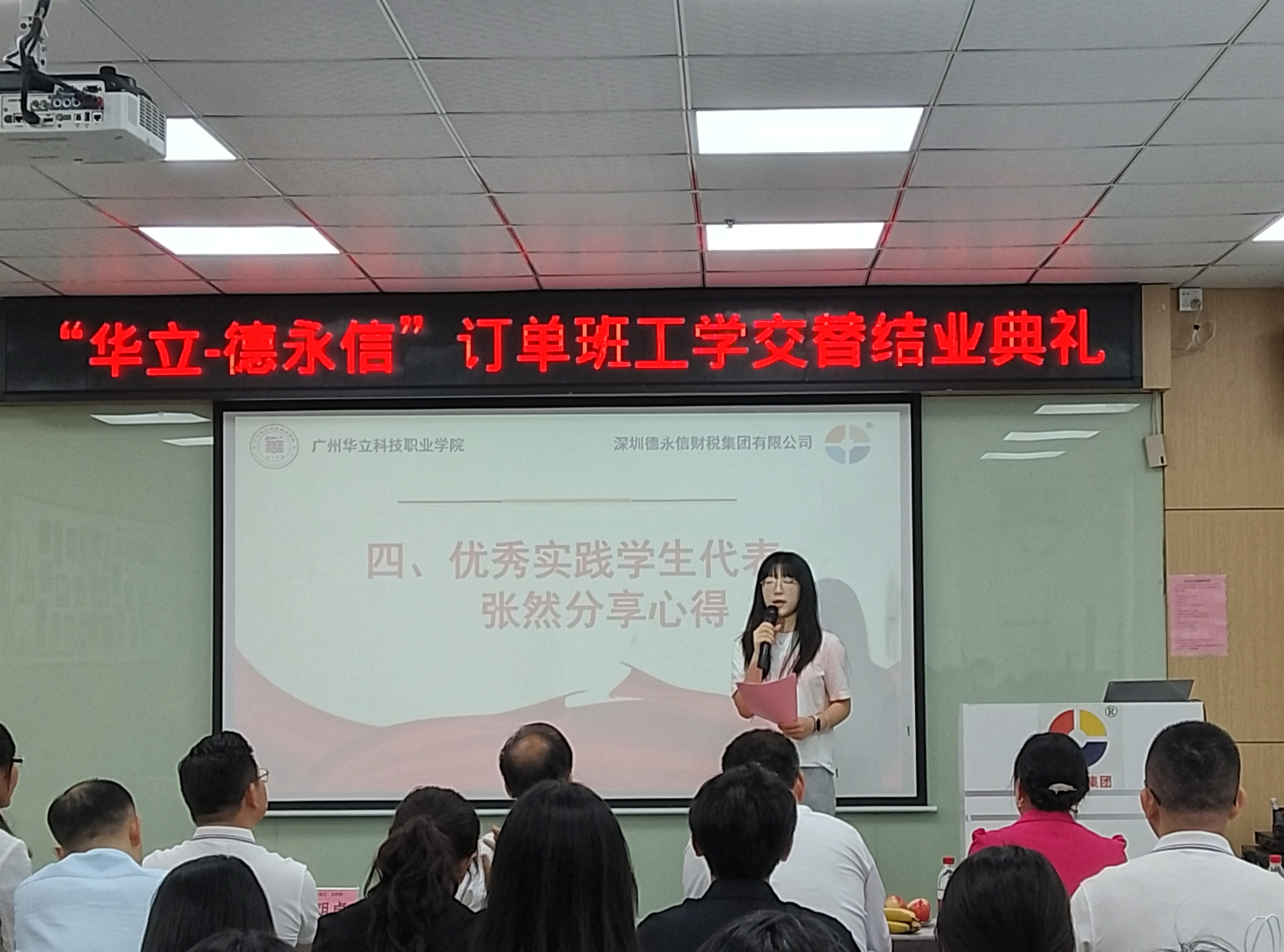 冼朝卓總經理簡單回顧了廣州華立科技職業(yè)學院與深圳德永信財稅集團公司長達17年的合作歷程,并對此次工學交替班的學員在短期內,快速適應崗位要求,在實踐知識、溝通協(xié)調、職業(yè)能力等方面的提升表示充分認可,對繼續(xù)深化合作、創(chuàng)新合作模式、擴展合作領域充滿期待。