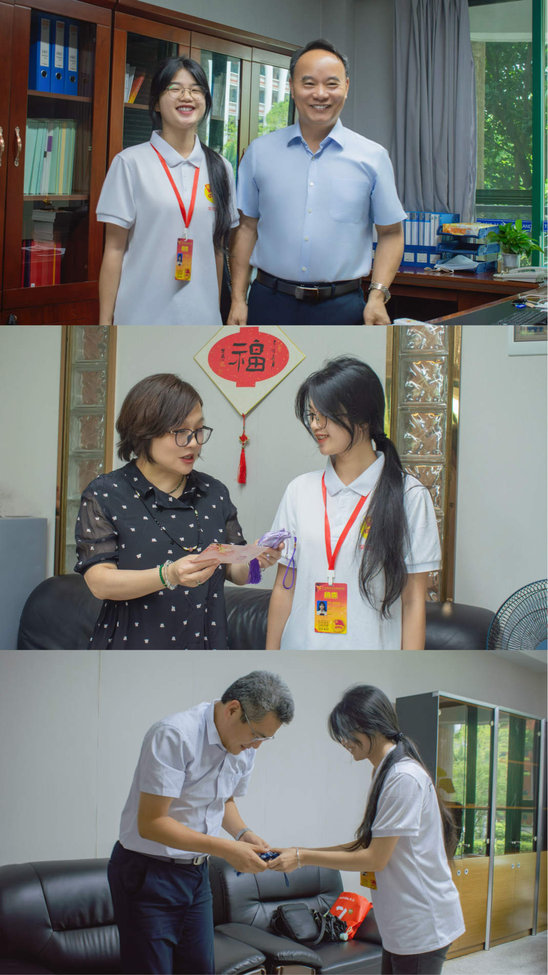 校團(tuán)委的同學(xué)們更懷揣感恩之心,將這份節(jié)日的溫情與安康的祈愿延伸傳遞。他們親手將飽含敬意的粽子與精心制作的香囊,贈(zèng)予辛勤耕耘的老師們,以及默默奉獻(xiàn)的后勤工作人員。