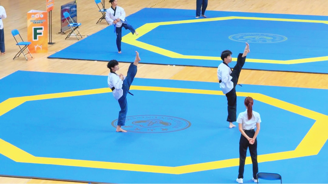 本次賽事由教育學(xué)院曾豪釔老師率隊(duì)在丙組競(jìng)技、品勢(shì)和跆拳道舞三大項(xiàng)目中展開激烈角逐。在個(gè)人競(jìng)技比賽上,隊(duì)員們目光如炬、斗志昂揚(yáng),每一次出拳、每一次踢腿都飽含力量與決心,將平日里的刻苦訓(xùn)練化作賽場(chǎng)上的凌厲攻勢(shì)。經(jīng)過一番龍爭(zhēng)虎斗、激烈交鋒,隊(duì)員們憑借扎實(shí)的功底和頑強(qiáng)的拼搏精神,取得了令人驚嘆的優(yōu)異成績(jī):林文錦、黃曹凡、周志聰三位同學(xué)分別在個(gè)人競(jìng)技男子-63kg、66kg、78kg比賽中摘得金牌;林依曼同學(xué)在個(gè)人競(jìng)技女子-67kg比賽中奪得銀牌;吳藝、張保頤兩位同學(xué)分別在個(gè)人競(jìng)技女子-46kg、62kg中獲得銅牌,同學(xué)們完美彰顯了華立跆拳道隊(duì)的強(qiáng)勁實(shí)力和專業(yè)水準(zhǔn)。