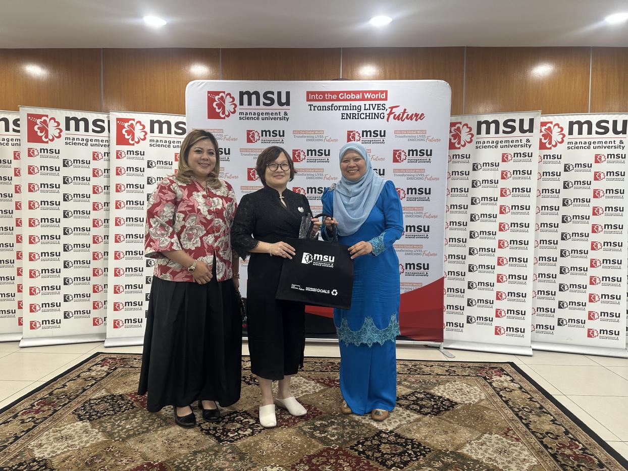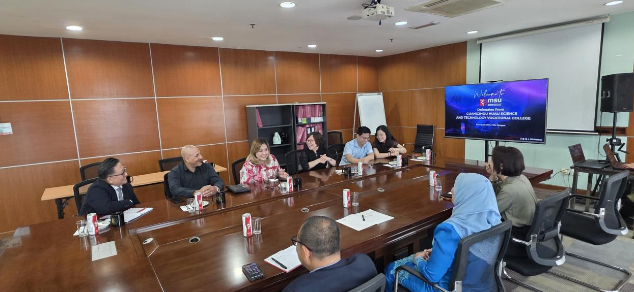 隨后,代表團(tuán)訪問了馬來西亞管理與科技大學(xué)(MSU),與副校長、國際交流處負(fù)責(zé)人及中國市場相關(guān)負(fù)責(zé)人進(jìn)行會談。雙方重點(diǎn)探討了中醫(yī)學(xué)專業(yè)“國際專升本”聯(lián)合培養(yǎng)路徑,并就我校華立附屬學(xué)校國際班學(xué)生的升學(xué)通道、課程對接等事宜交換意見。會后,代表團(tuán)參觀了校園,深切感受到當(dāng)?shù)厣詈竦奈幕滋N(yùn)與教育活力。