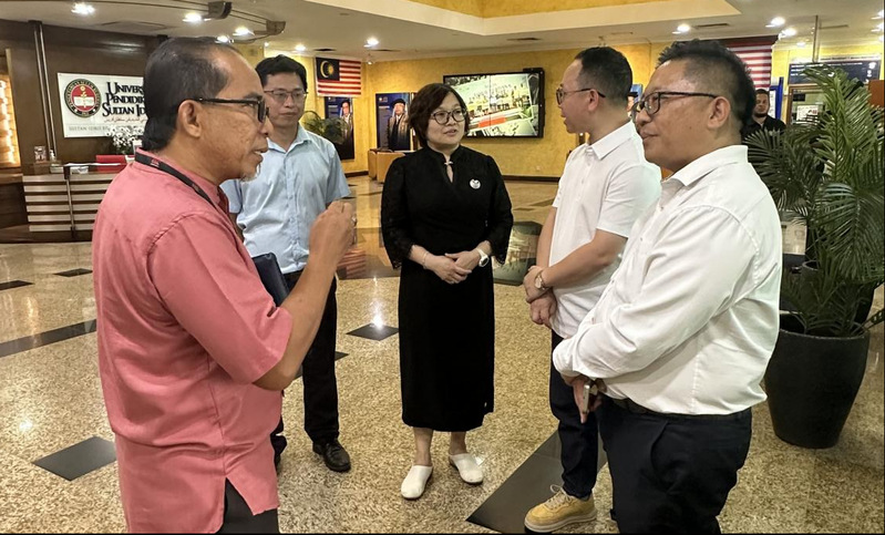 在馬來西亞蘇丹依德里斯教育大學(xué)(UPSI),代表團(tuán)參觀了兩個(gè)校區(qū)的圖書館、行政樓及中文系等教學(xué)設(shè)施,并與體育學(xué)院院長舉行會談。雙方圍繞“職教出?!敝黝},探討了在體育教育、師資培訓(xùn)、課程共建、中文+等領(lǐng)域合作的可能性,一致同意未來加強(qiáng)溝通,推動具體項(xiàng)目落地。