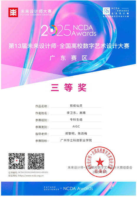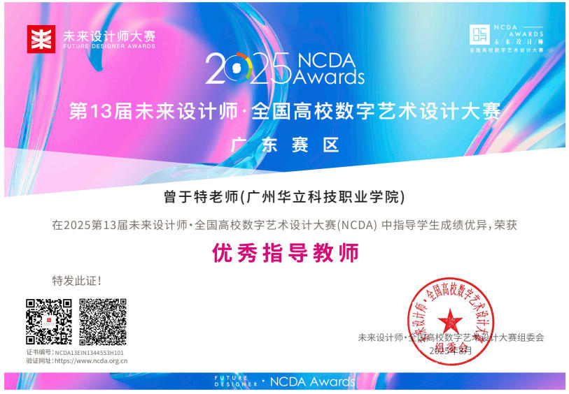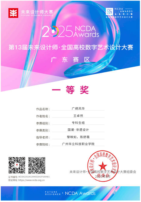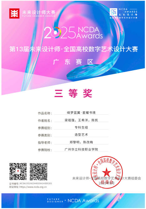 在2025年舉辦的第13屆未來設(shè)計(jì)師·全國高校數(shù)字藝術(shù)設(shè)計(jì)大賽(NCDA)中,藝術(shù)與傳媒學(xué)院師生憑借其卓越的創(chuàng)意和精湛的技術(shù),榮獲多項(xiàng)大獎(jiǎng)。未來設(shè)計(jì)師·全國高校數(shù)字藝術(shù)設(shè)計(jì)大賽(NCDA)是入選《全國普通高校大學(xué)生競賽排行榜》,近20家省教育廳認(rèn)定,“學(xué)習(xí)強(qiáng)國”學(xué)習(xí)平臺(tái)支持,對(duì)接聯(lián)合國國際賽的全國性大學(xué)生競賽。是高校教育教學(xué)改革和創(chuàng)新人才培養(yǎng)的重要競賽項(xiàng)目之一,具有極高的知名度與影響力。本次大賽是由全國高校數(shù)字藝術(shù)設(shè)計(jì)專業(yè)委員會(huì)主辦,旨在挖掘和培養(yǎng)數(shù)字藝術(shù)設(shè)計(jì)領(lǐng)域的未來之星,大賽已連續(xù)舉辦13屆,為藝術(shù)設(shè)計(jì)領(lǐng)域的高水平知名賽事,是我院師生積極參與的重要專業(yè)競賽之一。