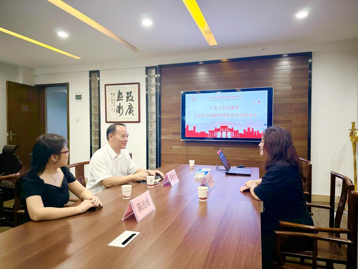 2025年9月16日,廣告人文化集團(tuán)(天津)有限公司總裁辦公室主任李君一行到訪廣州華立科技職業(yè)學(xué)院,與校方就深化校企合作、推動(dòng)產(chǎn)教融合展開座談交流。廣州華立科技職業(yè)學(xué)院校長(zhǎng)廖俊杰、藝術(shù)與傳媒學(xué)院黨總支書記陳改梅等出席本次會(huì)議。