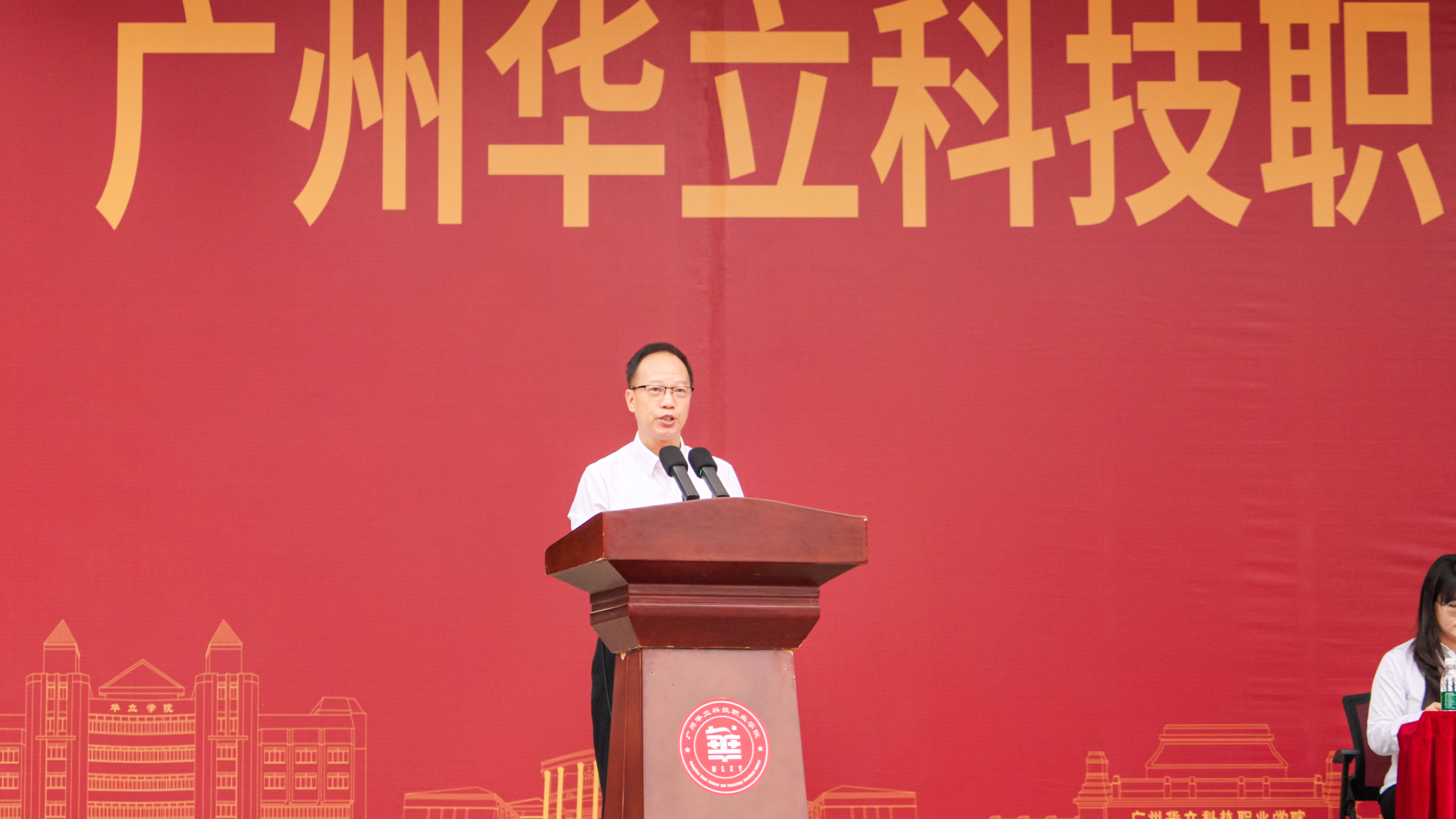 校黨委書記陳良聲作大會(huì)致辭。他代表學(xué)校全體師生員工,對(duì)2025級(jí)新生的到來(lái)表示最熱烈的歡迎。陳書記回顧了學(xué)校的發(fā)展歷程與辦學(xué)成就。他指出,廣州華立科技職業(yè)學(xué)院辦學(xué)二十六年來(lái),始終秉承"崇德、求是、博學(xué)、篤行"的校訓(xùn),堅(jiān)持立德樹人根本任務(wù),緊密對(duì)接現(xiàn)代化產(chǎn)業(yè)體系建設(shè)需求,積極擁抱數(shù)字經(jīng)濟(jì)浪潮,為建設(shè)教育強(qiáng)國(guó)、推進(jìn)中國(guó)式現(xiàn)代化作出職業(yè)教育的貢獻(xiàn)。過去一學(xué)年,學(xué)校在社會(huì)綜合評(píng)價(jià)排名、國(guó)家級(jí)和省級(jí)榮譽(yù)、師生競(jìng)賽等方面成績(jī)斐然,這些成就既凝聚著全體華立人的智慧與汗水,也奠定了同學(xué)們未來(lái)成長(zhǎng)的堅(jiān)實(shí)平臺(tái)。