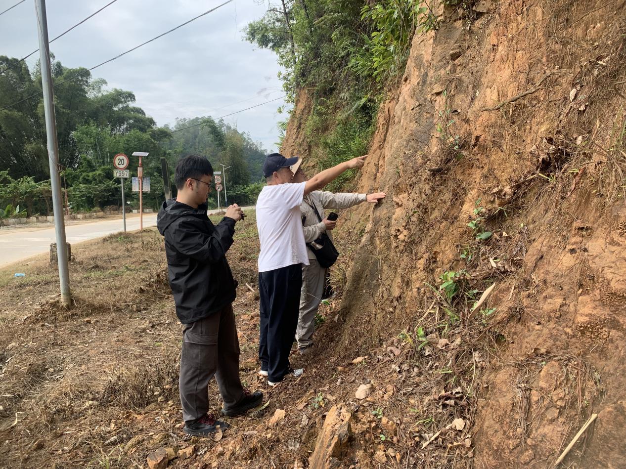 兩位教授根據(jù)地質(zhì)現(xiàn)象,從如何觀察、構(gòu)造的細(xì)微差異、構(gòu)造成因分析、與金礦的成因等現(xiàn)象,對(duì)青年教師做了耐心講解、交流。青年教師們?nèi)谭e極參與、主動(dòng)求知,通過理論與實(shí)踐的深度融合,不僅直觀理解了課堂教學(xué)中抽象的地質(zhì)概念,更有效拓寬了專業(yè)視野,積累了寶貴的野外地質(zhì)工作經(jīng)驗(yàn),對(duì)云浮市及周邊區(qū)域的地質(zhì)構(gòu)造現(xiàn)象、如何采集定向標(biāo)本等技能有了更為深刻的認(rèn)知。參與考察的青年教師表示,此次活動(dòng)不僅提升了自身的野外實(shí)踐能力,更明確了今后教科研的發(fā)力方向,將把所學(xué)所獲融入課堂教學(xué)與科研工作中,切實(shí)提升教學(xué)質(zhì)量與研究水平。