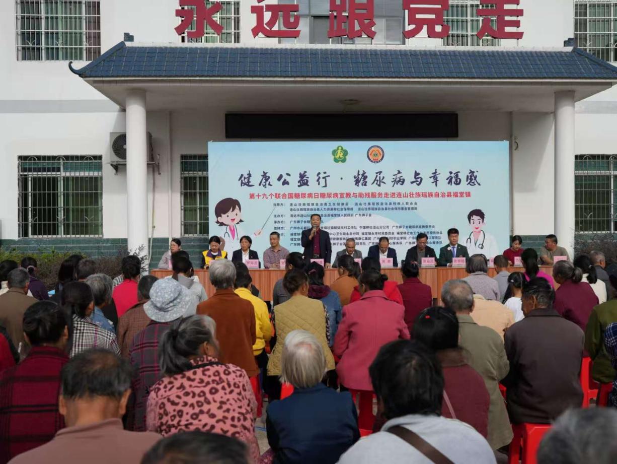 2025年11月14日是第十九個世界糖尿病日,廣州華立科技職業(yè)學院健康學院省級農(nóng)村科技特派員團隊在清遠市連山壯族瑤族自治縣福堂鎮(zhèn)永豐村開展藥食同源與健康科普宣講篩查活動,一場以“健康公益行-糖尿病與幸福感”為主題的大型糖尿病宣講科普、扶殘助殘活動成功舉辦?;顒蝇F(xiàn)場設(shè)置了無創(chuàng)測血糖、AI眼底篩查、AI中醫(yī)體驗等豐富多樣的環(huán)節(jié),吸引了超600名村民參與,活動得到了福堂鎮(zhèn)人民政府的充分肯定與贊譽。