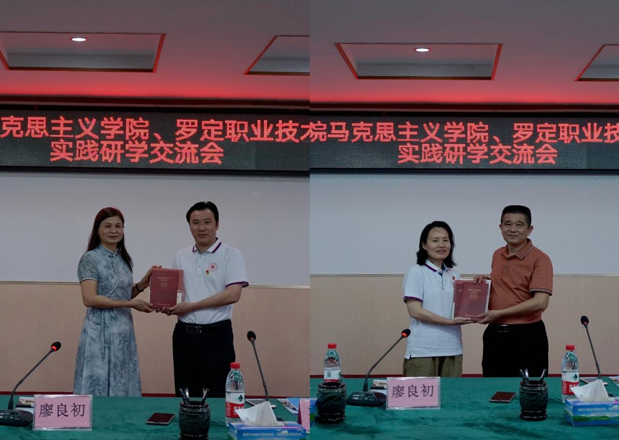 交流會上,馬克思主義學(xué)院向羅定職業(yè)技術(shù)學(xué)院進(jìn)行了贈書儀式。