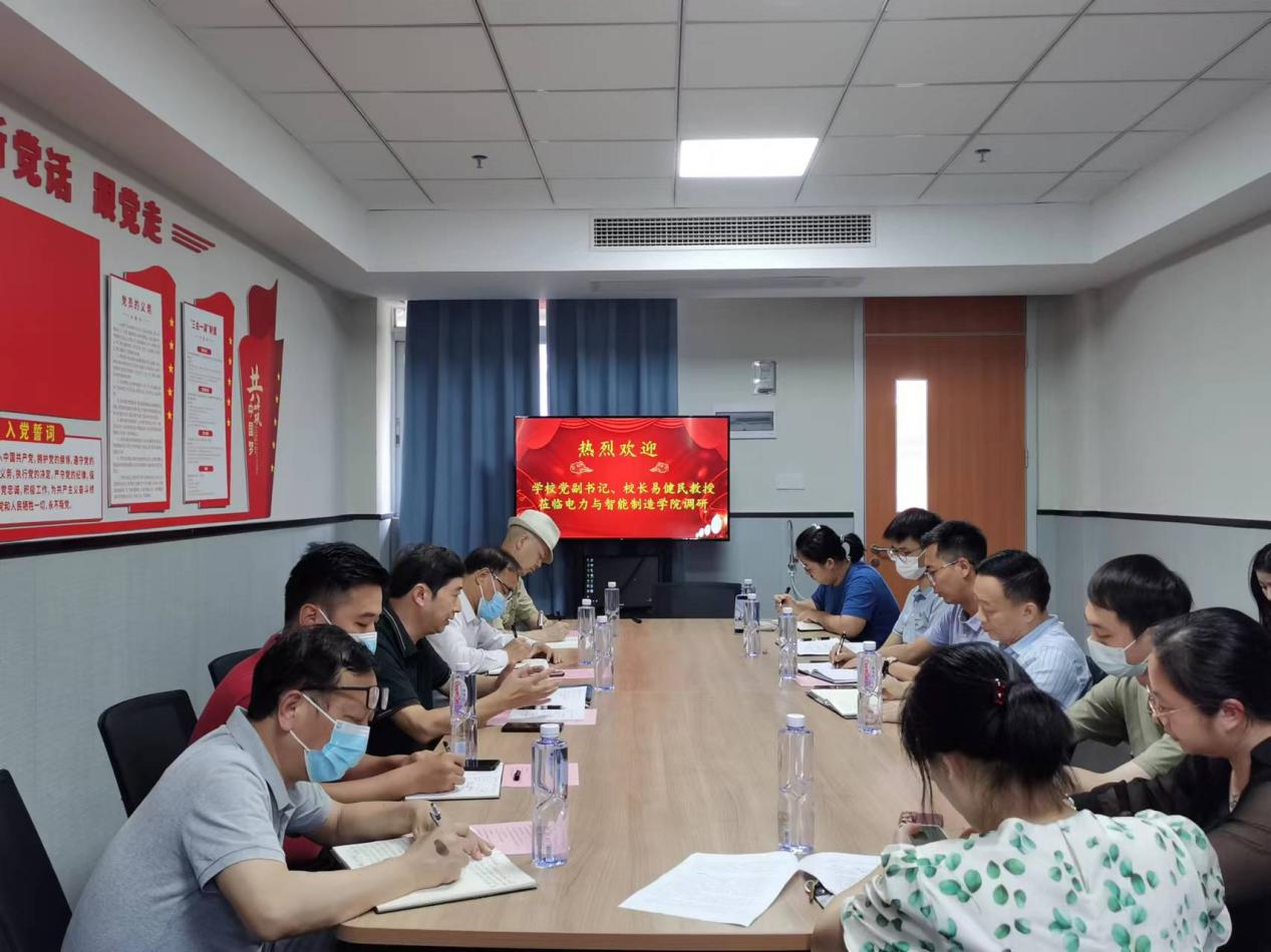 5月23日,學(xué)校黨委副書記、校長易健民教授到電力與智能制造學(xué)院就全面貫徹落實黨的二十大精神和習(xí)近平總書記視察廣東重要講話、重要指示精神,加強學(xué)科建設(shè),規(guī)范達標(biāo),品牌提升,努力推進學(xué)校高質(zhì)量發(fā)展進行專題調(diào)研。學(xué)校品牌發(fā)展中心主任劉宇赤,科研處處長溫偉勝、副處長徐中海,教務(wù)處處長助理刁鏡林、科長王澤秀等參加調(diào)研。