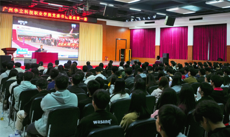 3月12日晚,廣州華立科技職業(yè)學(xué)院2024年春季學(xué)期思政第一課在圖書館八樓報告廳舉行,學(xué)校黨委書記陳良聲以“在科教興國的新征程上挺膺擔(dān)當(dāng)”為題給700多名學(xué)生講授了思政第一課。馬克思主義學(xué)院教師、黨委辦公室和各二級學(xué)院黨務(wù)干部參加聽課。思政第一課由黨委辦公室主任劉宇赤主持。