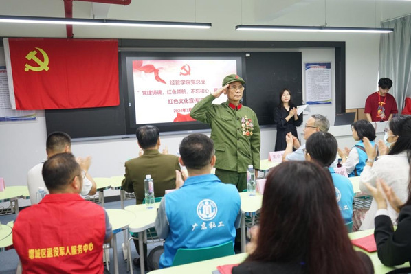 2024年3月27日下午,經(jīng)濟(jì)管理學(xué)院黨總支在西三教學(xué)樓208課室舉行“黨建鑄魂領(lǐng)航向 薪火相傳永向前”主題黨日活動(dòng)。參加本次活動(dòng)的有“老兵永遠(yuǎn)跟黨走”紅色宣講團(tuán)代表、戰(zhàn)斗英雄顧海城同志和黃香源同志;廣州市增城區(qū)增江街道社區(qū)工作站負(fù)責(zé)同志和黨員代表;經(jīng)濟(jì)管理學(xué)院黨總支書記朱少先同志,支委委員、副院長(zhǎng)朱向平同志和專職副書記兼學(xué)生黨支部書記謝曉慧同志,以及師生黨員和經(jīng)管學(xué)院黨建小組全體成員。會(huì)議由謝曉慧同志主持。