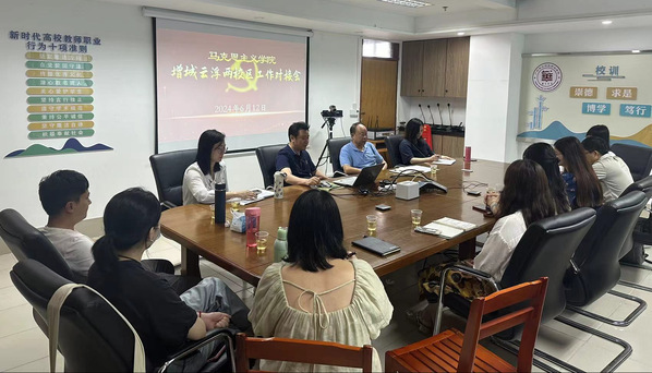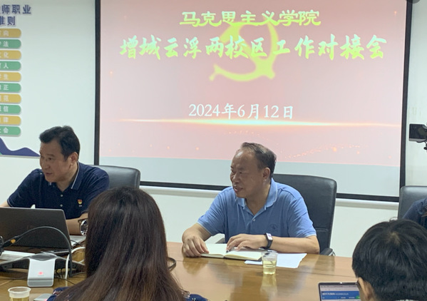6月12日上午,馬克思主義學(xué)院在3教807會議室召開增城·云浮兩校區(qū)工作對接會,學(xué)習(xí)習(xí)近平總書記近期對思政課建設(shè)重要指示精神,推動黨紀(jì)學(xué)習(xí)教育落到實(shí)處,總結(jié)本學(xué)期工作成績,布置本學(xué)期后段工作。廖良初院長、張燕金主任、增城校區(qū)教師代表以及云浮校區(qū)全體思政課教師參會。會議由譚劍林副院長主持。