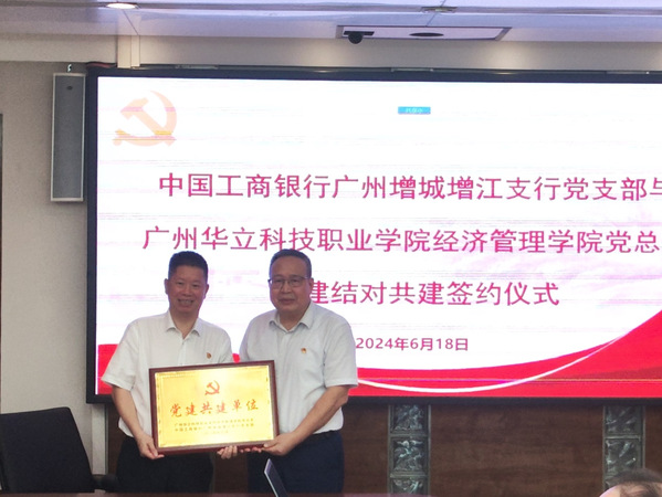 6月18日上午,經濟管理學院黨總支與中國工商銀行廣州增城增江支行黨支部舉行黨建結對共建簽約儀式。學校黨委書記陳良聲、中國工商銀行廣州增城支行黨委書記行長劉明強以及雙方相關領導、黨員代表參加了簽約儀式。