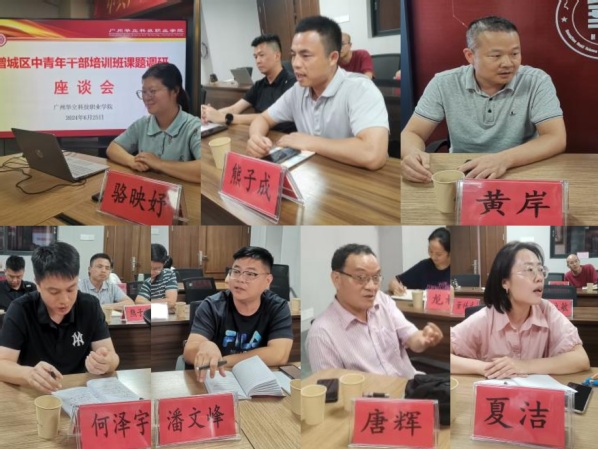 6月25日下午,廣州市增城區(qū)委黨校中青年干部培訓(xùn)班學(xué)員來(lái)我校馬克思主義學(xué)院開(kāi)展“甘泉文化‘雙創(chuàng)’路徑研究”調(diào)研活動(dòng)。學(xué)校黨委書(shū)記陳良聲、黨辦主任劉宇赤、督導(dǎo)室主任唐輝、馬克思主義學(xué)院院長(zhǎng)廖良初和部分思政課教師參加。調(diào)研座談會(huì)由黨辦主任劉宇赤主持。