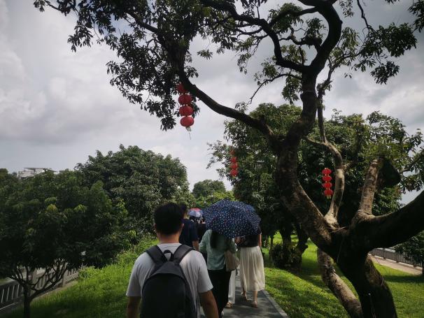 瓜嶺村始建于明朝成化年間,村落距今有500多年歷史,這里保留著明清時(shí)期嶺南水鄉(xiāng)的歷史風(fēng)貌,是廣東省著名僑鄉(xiāng),也是廣州唯一的水上清代建筑民居群。在講解員帶領(lǐng)下,我院一行人參觀了游客中心、碉樓、黃公祠、門樓、研學(xué)活動(dòng)中心等,對(duì)瓜嶺村的前世今生有了全面而深刻的認(rèn)識(shí)。瓜嶺村原名瓜洲村,取瓜瓞綿長(zhǎng)之意,歷史上曾有多位村民到海外謀生。咸豐六年前后,上百村民前往美洲淘金,20世紀(jì)又有村民赴新西蘭等地,現(xiàn)有3000多鄉(xiāng)親僑居海外,村民的奮斗精神和故土情懷為瓜嶺村注入了獨(dú)特的文化氣息。