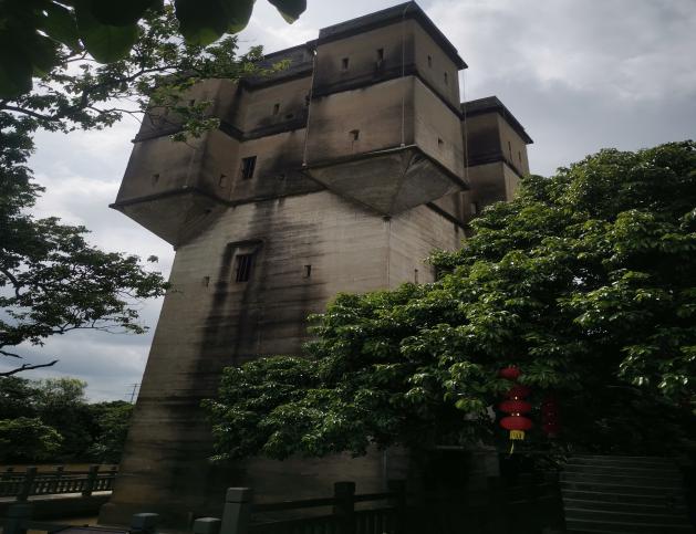 除了悠久的歷史淵源和僑鄉(xiāng)文化外,保存完整的碉樓也是震撼人心的古建筑之一。其中,寧遠(yuǎn)樓是廣州地區(qū)唯一的水上碉樓,現(xiàn)為廣州市文物保護(hù)單位。該樓取寧?kù)o致遠(yuǎn)之意,樓內(nèi)功能齊全,有瞭望口、機(jī)槍口、炮口及炮架移動(dòng)的軌道、食水井和廁所等,還有從天臺(tái)通往各層的傳聲孔。在1941年日軍攻打瓜嶺村時(shí),這座碉樓因其易守難攻的特點(diǎn),保護(hù)了當(dāng)時(shí)全村人的性命。