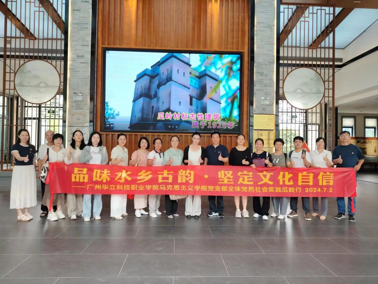為深入貫徹落實(shí)習(xí)近平文化思想,感受嶺南古村與現(xiàn)代文明的和諧交融,7月2日,馬克思主義學(xué)院直屬黨支部組織全體黨員教師,在增城區(qū)新塘鎮(zhèn)瓜嶺村開(kāi)展了以“品味水鄉(xiāng)古韻 堅(jiān)定文化自信”為主題的實(shí)踐調(diào)研活動(dòng)。