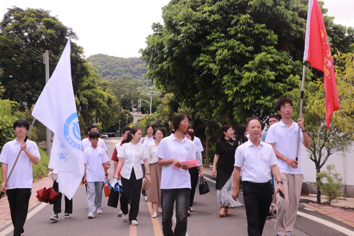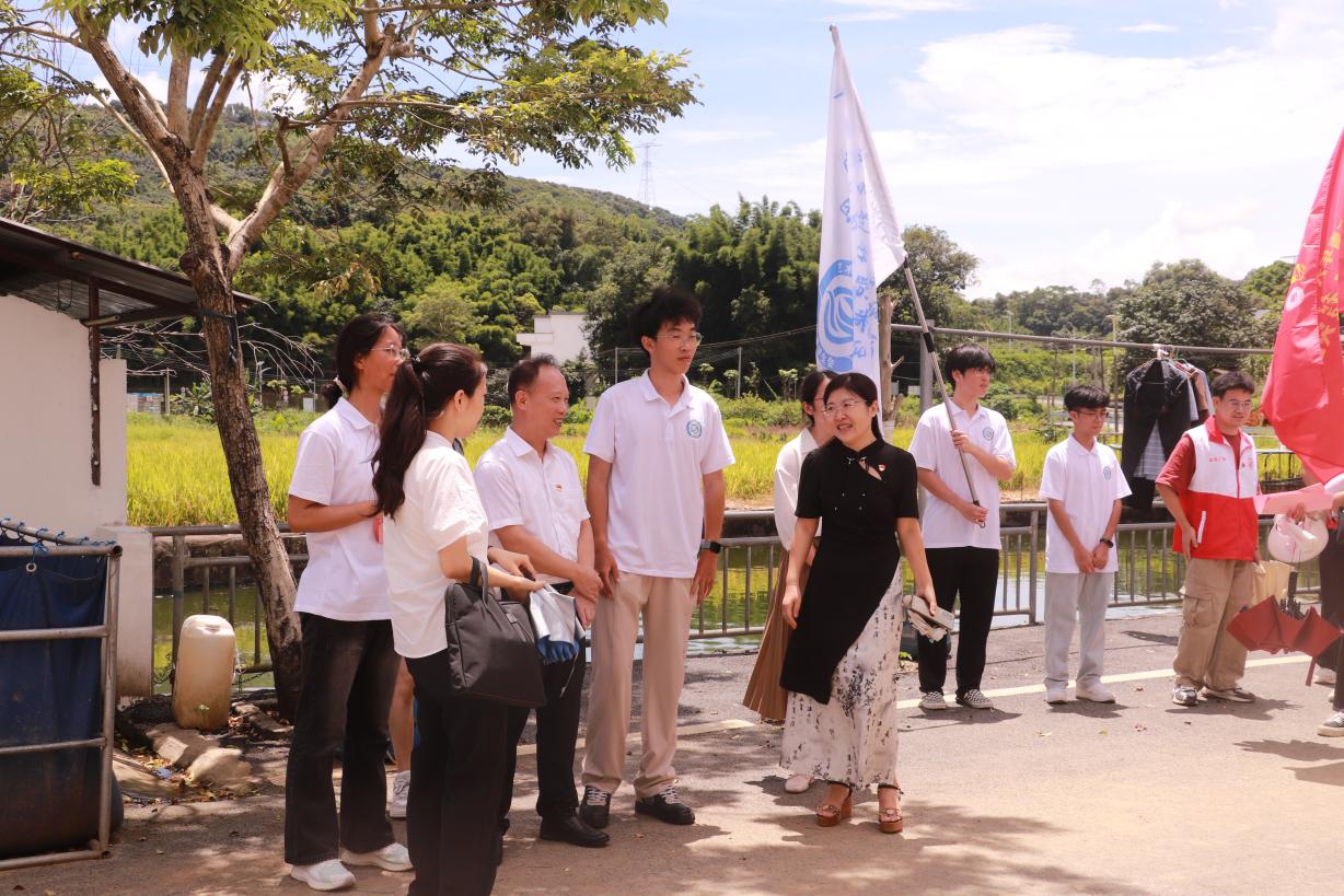 為貫徹落實廣東青年大學生“百千萬工程”突擊隊行動,進一步明確服務目標和工作重點,推動“百千萬工程”工作走深走實。7月15日上午,學校黨委書記陳良聲、黨委副書記副校長王洪艷等一行赴派潭鎮(zhèn)密石村調(diào)研指導大學生暑期社會實踐工作,為正在開展暑期社會實踐活動的“百千萬工程”奇思妙繪突擊隊師生們送上解暑慰問品,并在密石村村委會議室開展“百千萬工程”交流座談會。學校黨委組織部組織科副科長陳曉薇、團委副書記林靜珊、計算機信息工程學生黨總支專職副書記朱志豪陪同走訪。派潭鎮(zhèn)黨政綜合辦公室主任姚利利、派潭鎮(zhèn)密石村村委會副主任黃藝華、以及“百千萬工程”奇思妙繪突擊隊全體師生出席會議。
