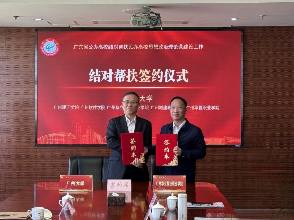 最后,廣州大學(xué)黨委常委、副校長(zhǎng)吳開(kāi)俊與我校陳良聲書(shū)記簽約了廣州大學(xué)與廣州華立科技職業(yè)學(xué)院思想政治理論課建設(shè)結(jié)對(duì)幫扶協(xié)議。