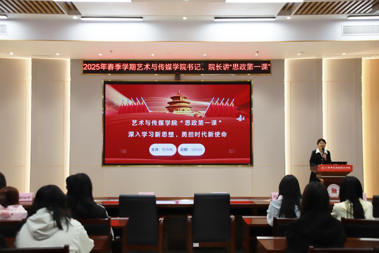 藝術(shù)與傳媒學(xué)院黨總支書記陳改梅以“深入學(xué)習(xí)新思想,勇?lián)鷷r代新使命”為題,結(jié)合AI技術(shù)革新、元宇宙文化傳播、“國潮熱”興起等熱點話題,強調(diào)新時代青年需將專業(yè)學(xué)習(xí)與國家戰(zhàn)略緊密結(jié)合。陳書記提出“以文化自信為底色,以技術(shù)創(chuàng)新為翼”,鼓勵學(xué)生用數(shù)字藝術(shù)講好中國故事,創(chuàng)作兼具思想深度與人文溫度的藝術(shù)作品。