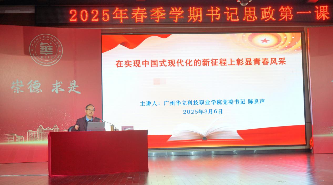 為深入學(xué)習(xí)貫徹黨的二十屆三中全會精神和《中共中央關(guān)于進(jìn)一步全面深化改革、推進(jìn)中國式現(xiàn)代化的決定》提出的重大舉措,引領(lǐng)廣大學(xué)生在實現(xiàn)中國式現(xiàn)代化的新征程上彰顯青春風(fēng)采。3月6日晚,學(xué)校黨委書記陳良聲在圖書館八樓報告廳為600多名學(xué)生代表講授了題為“在實現(xiàn)中國式現(xiàn)代化的新征程上彰顯青春風(fēng)采”的春季學(xué)期“思政第一課”。學(xué)校各二級黨組織書記、馬克思主義學(xué)院教師、黨委辦公室和各二級學(xué)院黨務(wù)干部到場聽課。思政第一課由黨委辦公室主任石朝陽主持。