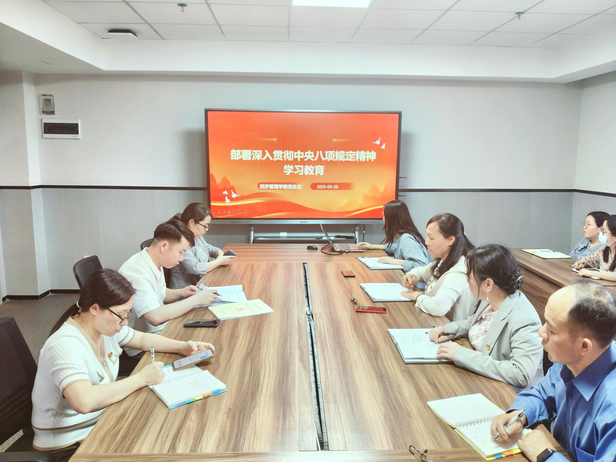 2025年3月28日下午,經(jīng)濟管理學(xué)院黨總支在西1-613召開專題會議,部署深入貫徹中央八項規(guī)定精神學(xué)習(xí)教育工作。會議由黨總支書記劉惠玲主持,學(xué)院全體師生黨員參會。