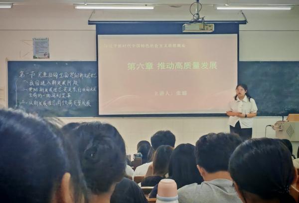 在圖書館602教室,周志平教授聽(tīng)取了馬克思主義學(xué)院青年教師張璐主講的《習(xí)近平新時(shí)代中國(guó)特色社會(huì)主義思想概論》課程。張老師以“完整準(zhǔn)確全面貫徹新發(fā)展理念”為主題,通過(guò)理論闡釋與實(shí)踐案例結(jié)合的方式,系統(tǒng)講述新發(fā)展理念的科學(xué)內(nèi)涵與時(shí)代價(jià)值。周志平教授聽(tīng)完課后對(duì)教學(xué)給予高度評(píng)價(jià),認(rèn)為張老師授課內(nèi)容正確、方法靈活、環(huán)節(jié)全面、時(shí)間把控到位,展現(xiàn)了青年教師扎實(shí)的教學(xué)基本功。同時(shí),周教授提出,思政課是講道理的課,要注意理論的深度和邏輯的嚴(yán)謹(jǐn)性,把道理講得更清楚。
