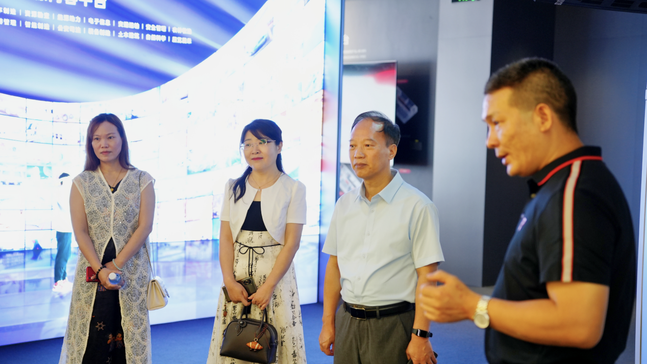 校企交流會前,在上海曼恒數(shù)字技術(shù)股份有限公司(華南總部)總經(jīng)理譚永冰的陪同下,陳良聲書記一行參觀了公司展廳及公司內(nèi)部環(huán)境,深入了解了企業(yè)的發(fā)展歷程、企業(yè)文化和業(yè)務(wù)布局。