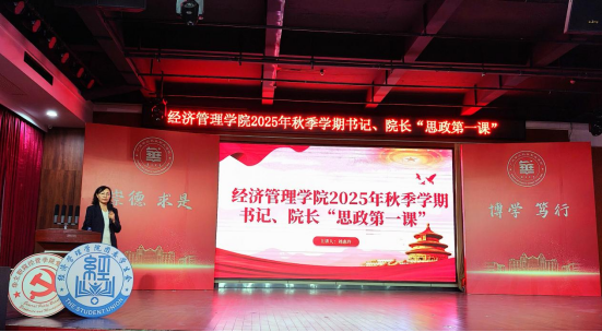 9月2日上午,經(jīng)濟(jì)管理學(xué)院在圖書館8樓開展了2025年秋季學(xué)期書記、院長(zhǎng)“思政第一課”。課程由黨總支專職副書記謝曉慧主持,學(xué)院全體輔導(dǎo)員、2024級(jí)學(xué)生代表及2025級(jí)全體新生共同參加學(xué)習(xí)。學(xué)院黨總支書記、院長(zhǎng)劉惠玲教授以“銘記偉大勝利,汲取奮進(jìn)力量”為主題,通過回溯歷史、解讀精神、展望未來三個(gè)篇章,為2025級(jí)全體新生帶來一堂生動(dòng)引人、正能量滿滿的專題思政課。