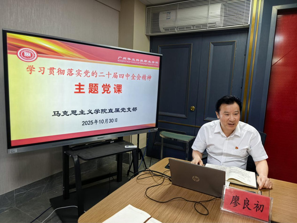 2025年10月30日,馬克思主義學(xué)院直屬黨支部在G1-314會(huì)議室開(kāi)展學(xué)習(xí)貫徹黨的二十屆四中全會(huì)精神主題黨課活動(dòng)。主題黨課由黨支部書(shū)記廖良初同志主持,學(xué)院全體黨員教師參加,楊玉瑞博士以《擘畫(huà)“中國(guó)之治”新藍(lán)圖——深入學(xué)習(xí)貫徹黨的二十屆四中全會(huì)精神》為題,為全體黨員上了一堂全會(huì)精神的專(zhuān)題輔導(dǎo)黨課。