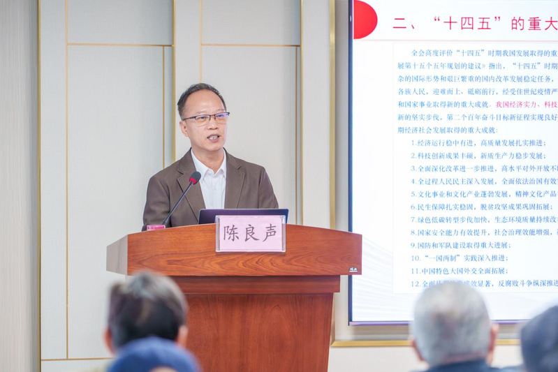 為深入學(xué)習(xí)領(lǐng)會和全面貫徹落實(shí)黨的二十屆四中全會精神,全力推進(jìn)學(xué)校高質(zhì)量發(fā)展。11月12日下午,學(xué)校黨委書記陳良聲在云浮校區(qū)圖書館710報(bào)告廳作黨的二十屆四中全會精神宣講專題報(bào)告。報(bào)告會由學(xué)校黨委副書記、副校長王洪艷主持。云浮校區(qū)職能部門負(fù)責(zé)人、二級學(xué)院黨政領(lǐng)導(dǎo)、各黨支部書記、學(xué)管主任和民主黨派人士等參加宣講會。