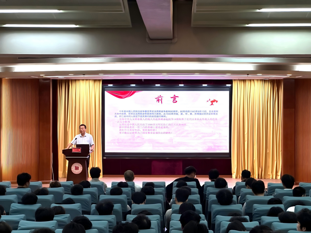 高堯來副書記圍繞“回顧歷史了解中國發(fā)展成就、中國經(jīng)濟快速發(fā)展的成功密碼、認清形勢站在歷史新起點、奮發(fā)圖強爭做民族脊梁”等四個方面帶領(lǐng)同學(xué)們回顧了中國革命與改革開放歷史:從舊中國的一窮二白到新中國GDP超越日本成為世界第二大經(jīng)濟體;從開國初的百廢待興到新中國的華為遙遙領(lǐng)先、太空探索的輝煌成就;再到國防與環(huán)境建設(shè)的巨大改善,全方位展示了改革開放以來取得的偉大成就。隨后,他深刻闡釋了中國經(jīng)濟高質(zhì)量發(fā)展的成功密碼,指出歷史經(jīng)驗已經(jīng)并將繼續(xù)證明,沒有中國共產(chǎn)黨的領(lǐng)導(dǎo),民族復(fù)興必然是空想,是歷史選擇了中國共產(chǎn)黨。面對百年未有之大變局,他向青年學(xué)子發(fā)出“奮發(fā)圖強,爭做民族脊梁”的號召并提出了兩點殷切期望:一是練就過硬本領(lǐng),要認真學(xué)好專業(yè)知識與技能,更要勇于創(chuàng)新創(chuàng)造,將創(chuàng)新理念深度融入學(xué)習(xí)之中。二是弘揚奮斗精神,要保持艱苦奮斗的優(yōu)良傳統(tǒng),做到不怕苦、能吃苦、甘吃苦,以踏實肯干的作風(fēng),在新時代的征程中貢獻青春力量。