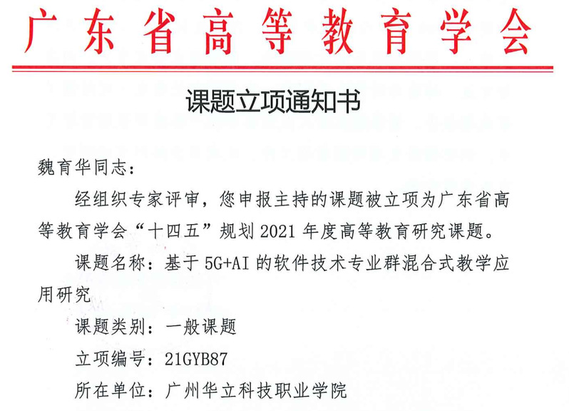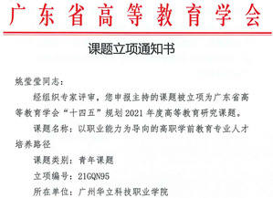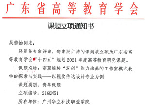 經(jīng)各單位申報(bào)、資格審查、專家評(píng)審,并結(jié)合全省申報(bào)總體情況,廣東省高等教育學(xué)會(huì)“十四五”規(guī)劃2021年度高等教育研究課題擬立項(xiàng)303項(xiàng),其中重點(diǎn)課題11項(xiàng)、一般課題196項(xiàng)、青年課題96項(xiàng)。我校共申報(bào)8項(xiàng),其中《基于“5G+AI”的“軟件技術(shù)專業(yè)群”混合式教學(xué)應(yīng)用研究》等四個(gè)課題獲一般課題立項(xiàng),《高職院?!半p創(chuàng)”能力培養(yǎng)的工作室模式教學(xué)的探索與實(shí)踐——以視覺傳達(dá)設(shè)計(jì)專業(yè)為例》等三個(gè)課題獲青年課題立項(xiàng),特此祝賀。