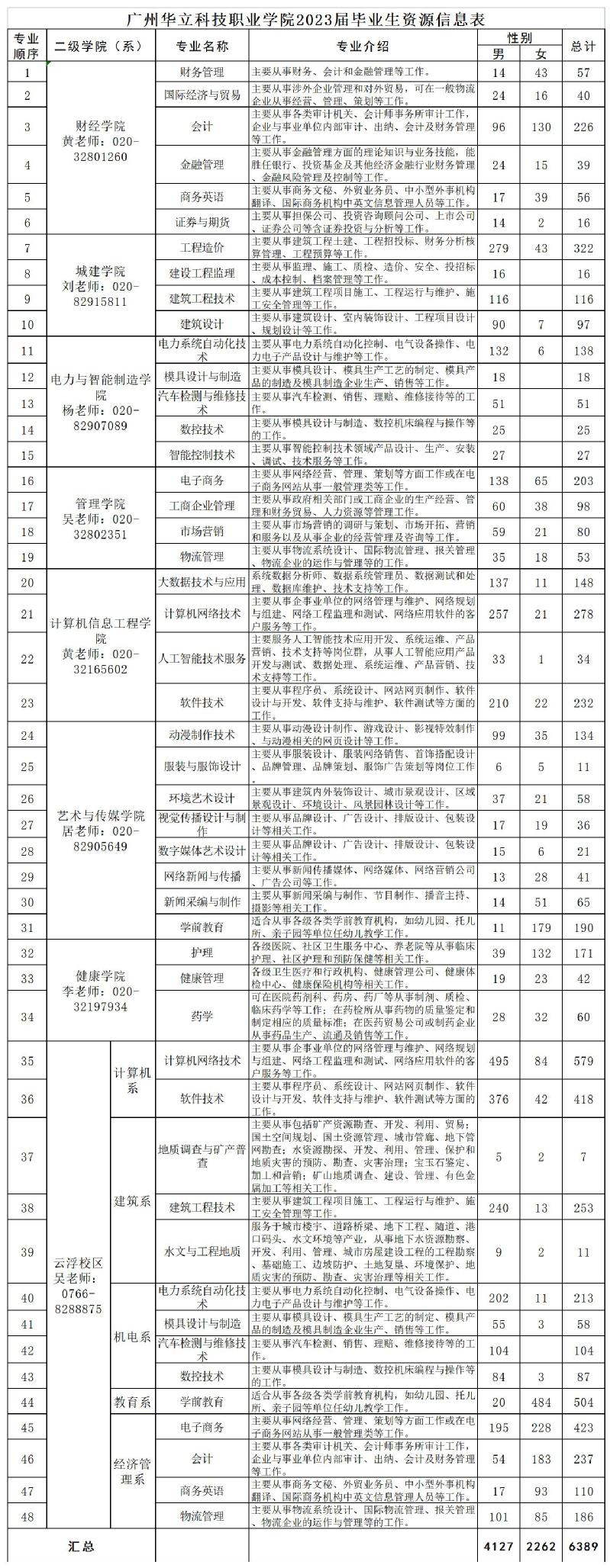 畢業(yè)生具體專業(yè)與人數詳見附件1《廣州華立科技職業(yè)學院2023屆畢業(yè)生信息明細表》。按照相關政策要求,我們將優(yōu)先對接專業(yè)對口、需求人數多、崗位覆蓋面廣的企業(yè)。