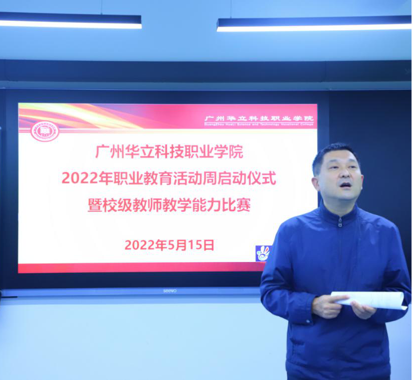 2022年5月15日,廣州華立科技職業(yè)學(xué)院舉行2022年職業(yè)教育活動(dòng)周啟動(dòng)儀式暨校級(jí)教師教學(xué)能力比賽順利舉行。我校易健民校長(zhǎng)、馬俊常務(wù)副校長(zhǎng)以及校外專家陳顯強(qiáng)教授等出席啟動(dòng)儀式,并擔(dān)任比賽評(píng)審。我校教務(wù)處處長(zhǎng)李衛(wèi)國(guó)主持活動(dòng)。