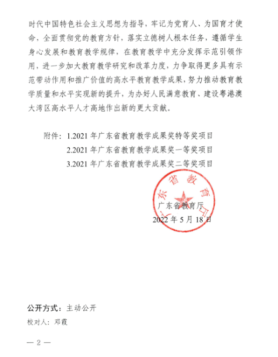 根據(jù)《廣東省教育廳關(guān)于公布2021年廣東省教育教學(xué)成果獎獲獎項目的通知》(粵教人函〔2022〕13號),我校財經(jīng)學(xué)院團隊的教學(xué)成果項目《高職財會類專業(yè)校企“共建共育共成長”人才培養(yǎng)模式的探索與實踐》獲2021年廣東職業(yè)教育教學(xué)成果獎二等獎項目。