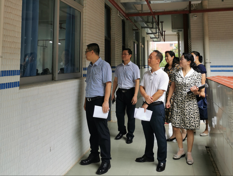 圖為檢查組在上課教室現(xiàn)場檢查