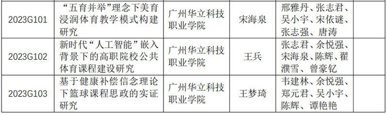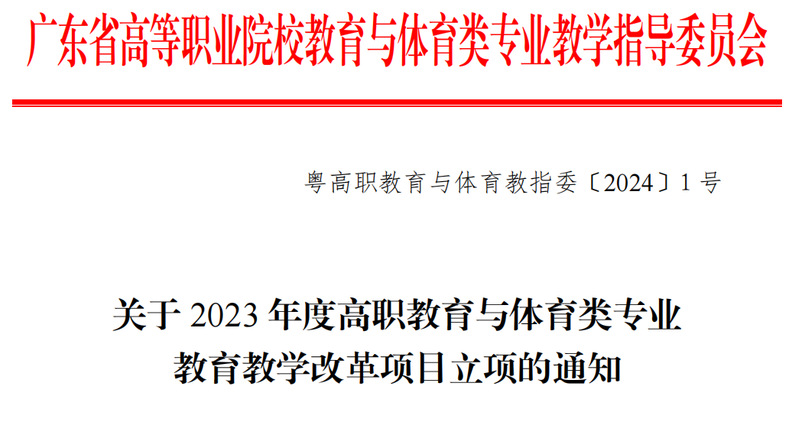 日前,從廣東省高等職業(yè)院校教育與體育類專業(yè)教學(xué)指導(dǎo)委員會文件《關(guān)于2023年高職教育與體育類專業(yè)教育教學(xué)改革項目立項的通知》(粵高職教育與體育教指委〔2024〕1號)獲悉,我校推薦申報的3項課題《“五育并舉”理念下美育浸潤體育教學(xué)模式構(gòu)建研究》(主持人:宋海泉)《新時代“人工智能”嵌入背景下的高職院校公共體育課程建設(shè)研究》(主持人:王兵)《基于健康補償信念理論下籃球課程思政的實證研究》(主持人:王夢琦)作為2023年高職教育與體育類專業(yè)教育教學(xué)改革項目立項。具體名單如下: