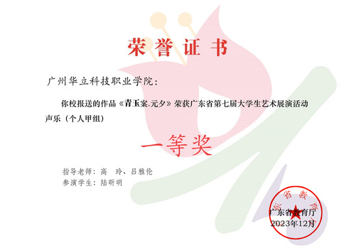 廣東省第七屆大學(xué)生藝術(shù)展演活動一等獎
