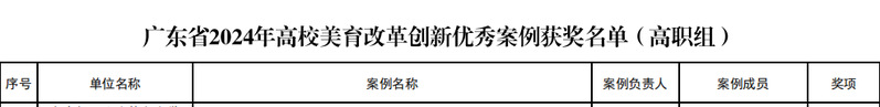 近日,廣東省教育廳公布了2024 年高校美育改革創(chuàng)新優(yōu)秀案例獲獎(jiǎng)名單,我校謝金曦團(tuán)隊(duì)的案例獲一等獎(jiǎng),褚玉峰團(tuán)隊(duì)的案例獲三等獎(jiǎng),實(shí)現(xiàn)我校美育案例在省級(jí)評(píng)獎(jiǎng)中的新突破。