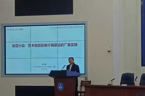 隨后,廣東工業(yè)大學(xué)藝術(shù)與設(shè)計(jì)學(xué)院盧世主教授,華南師范大學(xué)美術(shù)學(xué)院羅廣院長(zhǎng),華南師范大學(xué)地理科學(xué)學(xué)院陳林副教授,廣州美術(shù)學(xué)院城市學(xué)院吳宗建副院長(zhǎng),圍繞“‘雙百行動(dòng)’的藝術(shù)實(shí)踐與教育變革”主題,分別作《紅色·古色·綠色賦能藝術(shù)鄉(xiāng)建》、《藝術(shù)應(yīng)該成為教育的基礎(chǔ)》、《藝術(shù)推動(dòng)鄉(xiāng)村復(fù)興的日本神山經(jīng)驗(yàn)及啟示》、《雙百行動(dòng):藝術(shù)賦能陽(yáng)春圩鎮(zhèn)建設(shè)的廣美實(shí)踐》主旨演講。他們從不同的案例及視角出發(fā),闡釋了“雙百行動(dòng)”中的美術(shù)與設(shè)計(jì)教育對(duì)鄉(xiāng)村建設(shè)、鄉(xiāng)村教育、鄉(xiāng)村復(fù)興等發(fā)揮的重要賦能作用。