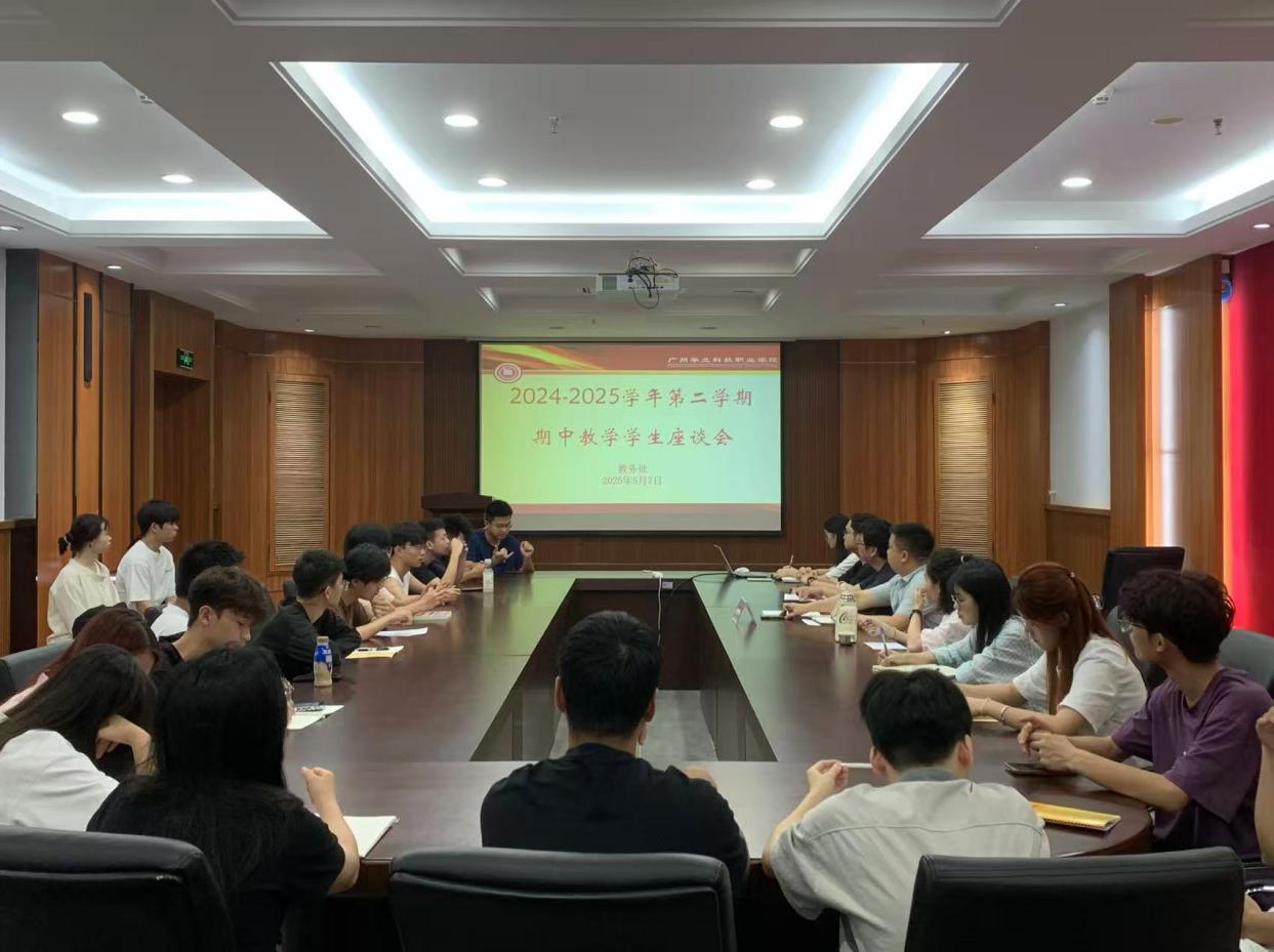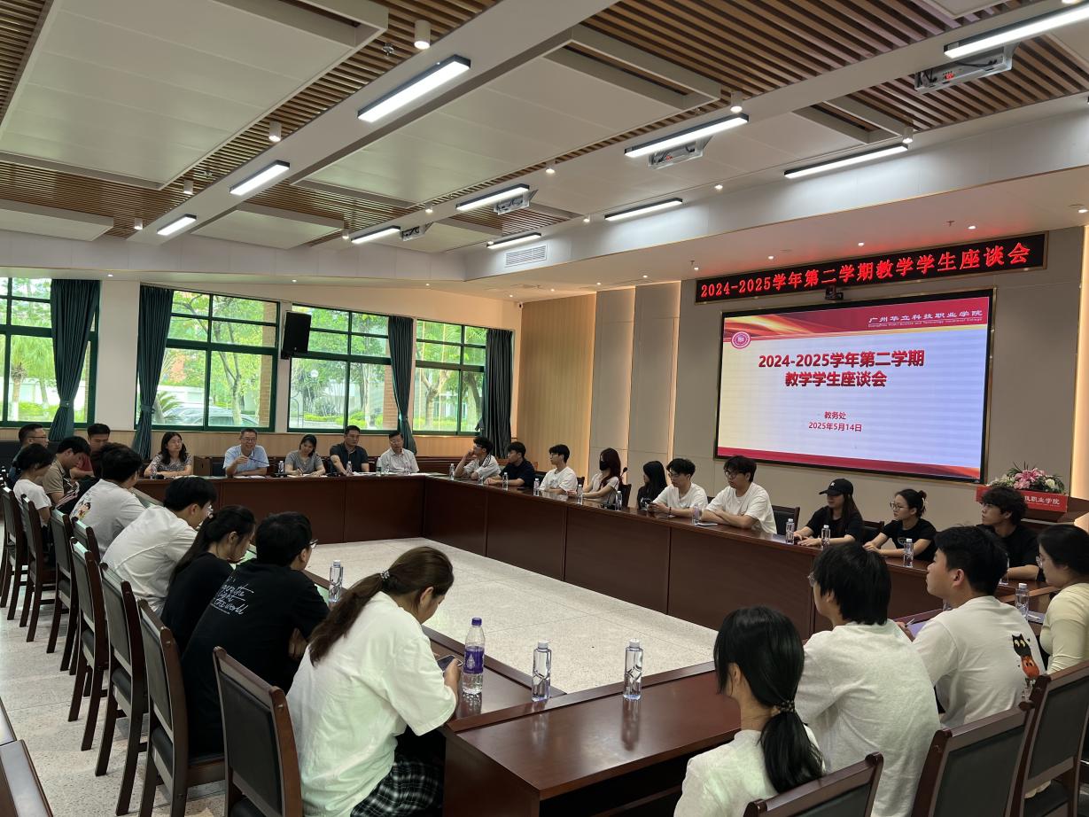 為進一步提高教學質量和教學管理水平,了解學生對教學工作和教學管理的有關意見與建議,5月7日、14日云浮校區(qū)和廣州校區(qū)分別在云浮校區(qū)圖書館一樓會議室、廣州校區(qū)圖書館104會議室召開學生座談會。副校長陳顯強、教務處、教學督導辦公室、學生處、實訓中心相關管理人員與各二級學院學生代表參加座談會。其中,王澤秀副處長主持廣州校區(qū)座談會、伍思立副處長主持云浮校區(qū)座談會。