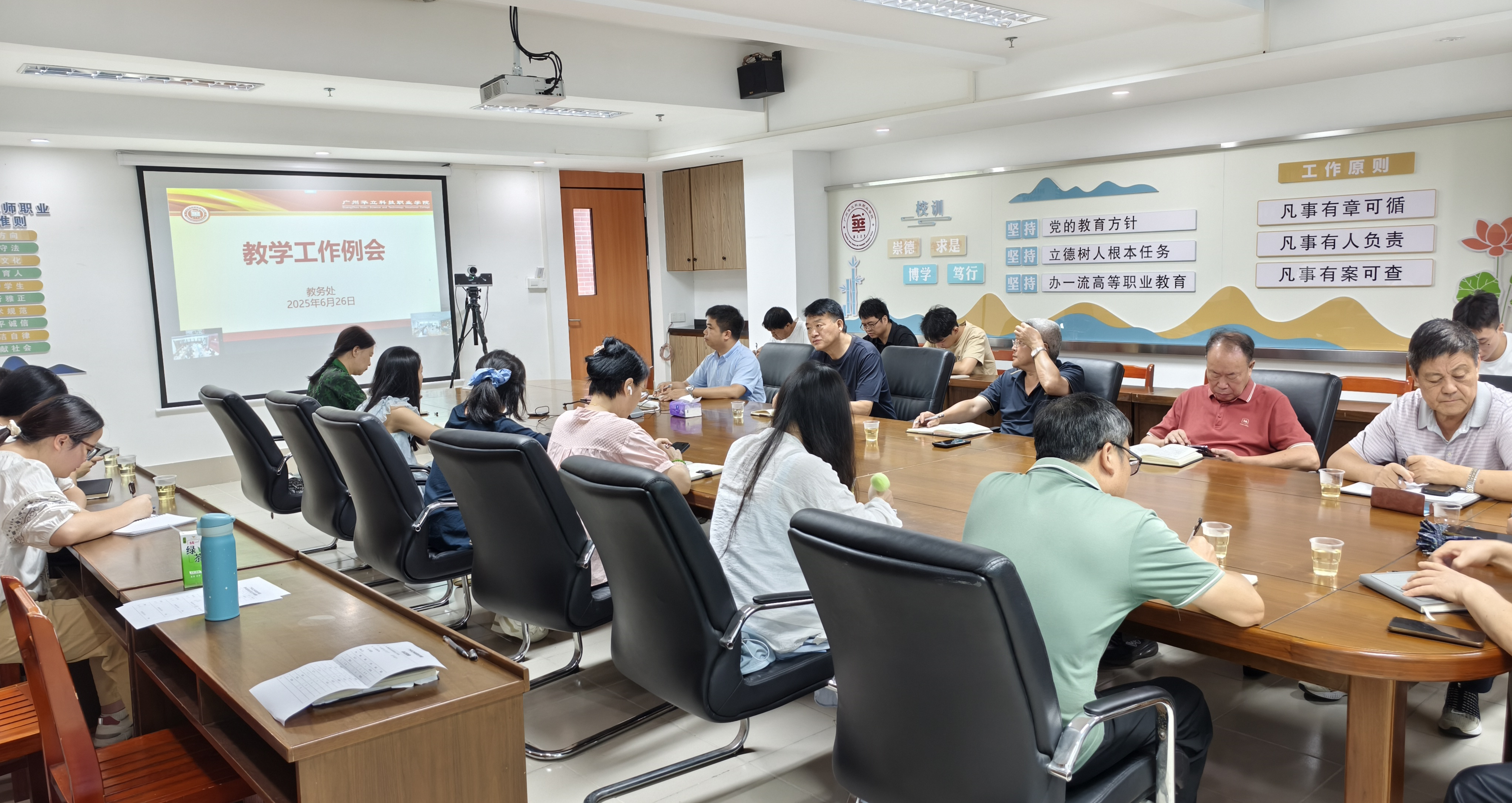 為扎實推進教學(xué)管理,確保學(xué)期末工作平穩(wěn)有序,并為新學(xué)期奠定堅實基礎(chǔ),6月26日上午,我校在行政樓305會議室(連線云浮校區(qū))召開2024-2025學(xué)年第十六次教學(xué)工作例會。會議由陳顯強副校長主持,兩校區(qū)教務(wù)處、實訓(xùn)中心、各二級學(xué)院負(fù)責(zé)人及教科研主任參會。會議聚焦實驗室建設(shè)、人才培養(yǎng)方案修訂、期末考試組織及學(xué)分認(rèn)定轉(zhuǎn)換等核心議題,進行了深入研討和周密部署。