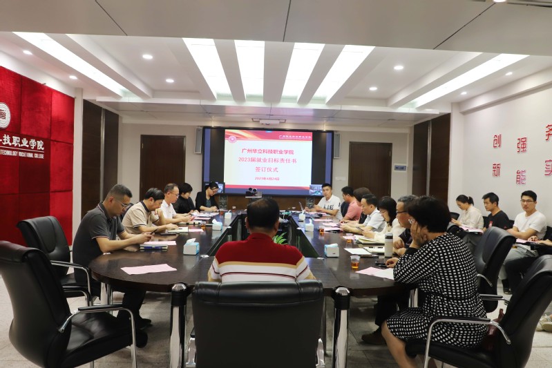 4月24日下午,廣州華立科技職業(yè)學(xué)院2023屆畢業(yè)生就業(yè)工作目標(biāo)責(zé)任書簽訂會(huì)在廣州增城校區(qū)行政樓305會(huì)議室隆重舉行。學(xué)校校長易健民、黨委書記陳良聲、常務(wù)副校長馬俊、副校長王洪艷,校長助理張劍鋒以及學(xué)校招生就業(yè)處、各二級學(xué)院領(lǐng)導(dǎo)以及就業(yè)線全體工作人員出席了本次會(huì)議。會(huì)議由學(xué)校分管就業(yè)工作的常務(wù)副校長馬俊主持,廣州、云浮兩校區(qū)同步舉行。