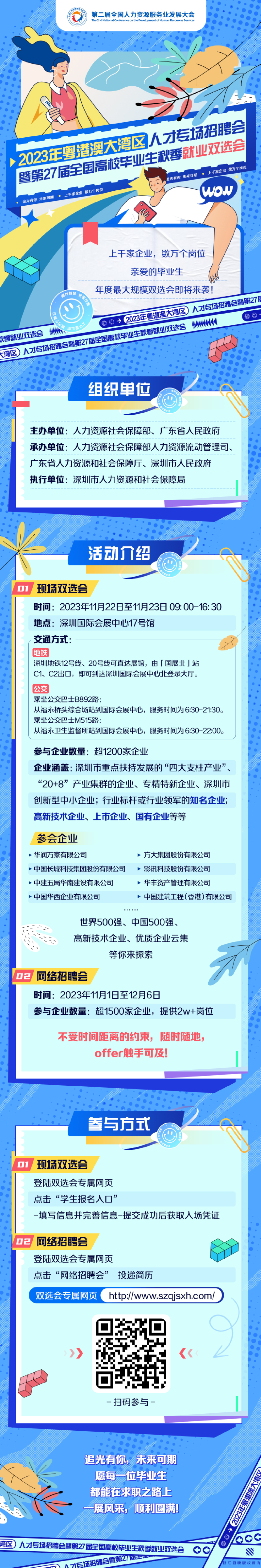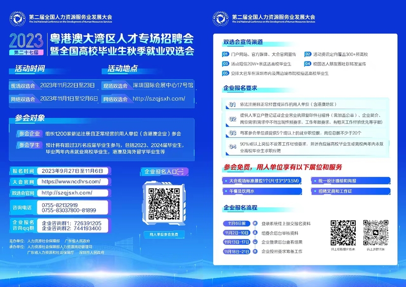 按照廣東省教育廳辦公室轉(zhuǎn)發(fā)《關(guān)于舉辦2023 年粵港澳大灣區(qū)人才專場(chǎng)招聘會(huì)暨第27屆全國(guó)高校畢業(yè)生秋季就業(yè)雙選會(huì)的通知》要求,各二級(jí)學(xué)院系應(yīng)認(rèn)真落實(shí)通知要求,積極配合深圳市人力資源和社會(huì)保障局做好我校2024屆畢業(yè)班學(xué)生的動(dòng)員和宣傳工作,發(fā)動(dòng)畢業(yè)班學(xué)生積極參與秋季就業(yè)雙選會(huì)應(yīng)聘報(bào)名工作,(學(xué)生應(yīng)聘報(bào)名流程詳見下圖1)以及各二級(jí)學(xué)院系通知各有關(guān)合作企業(yè),如企業(yè)意愿參會(huì),相關(guān)報(bào)名流程詳見下圖2。