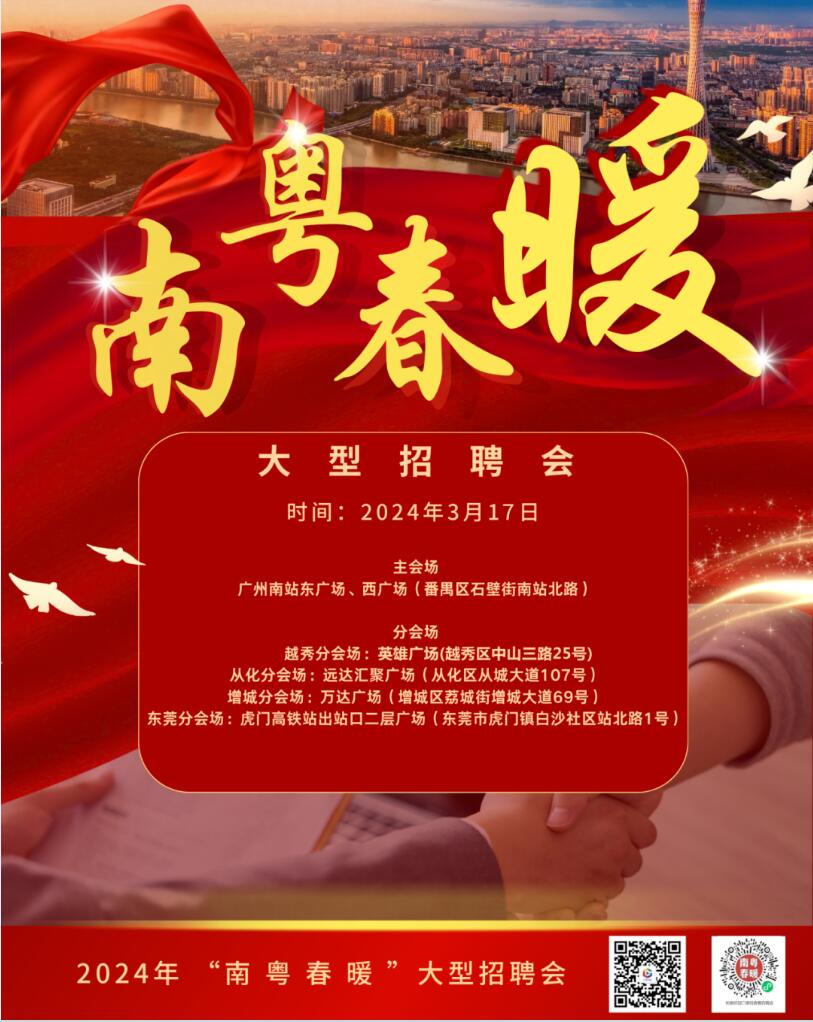 為滿足廣大求職者的需求,2024年“南粵春暖”大型招聘會將于3月17日隆重舉行!本次招聘會匯聚了線下線上逾千家企業(yè),提供上萬個優(yōu)質(zhì)崗位,現(xiàn)場設置制造業(yè)當家專區(qū)、粵港澳大灣區(qū)城市專區(qū)、外資外貿(mào)專區(qū)、綜合類企業(yè)招聘專區(qū)、總裁直聘專區(qū)、零工專區(qū)等,總有一個適合您!