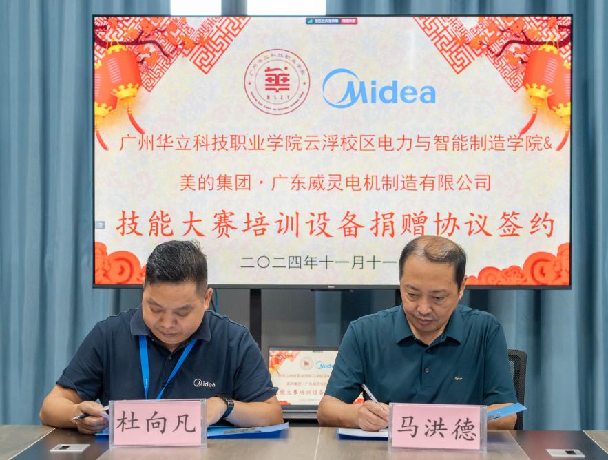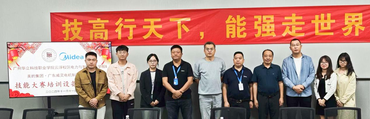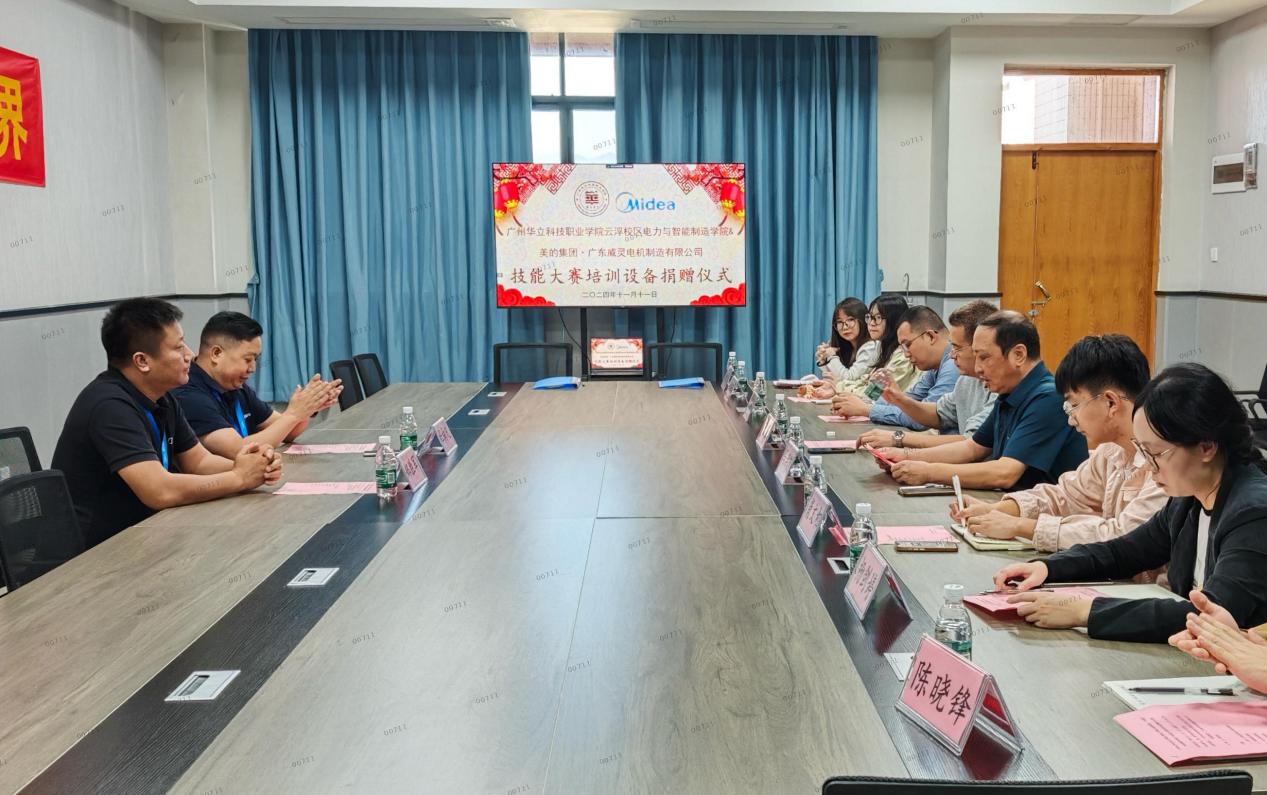 為加強校企深度融合,完善學(xué)院技能競賽實訓(xùn)條件,11月11日上午,“廣州華立科技職業(yè)學(xué)院電力與智能制造學(xué)院與美的集團·廣東威靈電機制造有限公司捐贈技能大賽培訓(xùn)設(shè)備儀式”在云浮校區(qū)二教907競賽培訓(xùn)工作室隆重舉行。美的威靈公司校企辦杜向凡主任、鄭勝軍經(jīng)理,我校黨委委員、校長助理張劍鋒,電力學(xué)院副院長馬洪德,教務(wù)處實踐科科長甘英浩及學(xué)院骨干教師參加。儀式由云浮校區(qū)電力學(xué)院校外教學(xué)負責人楊詠怡主持。