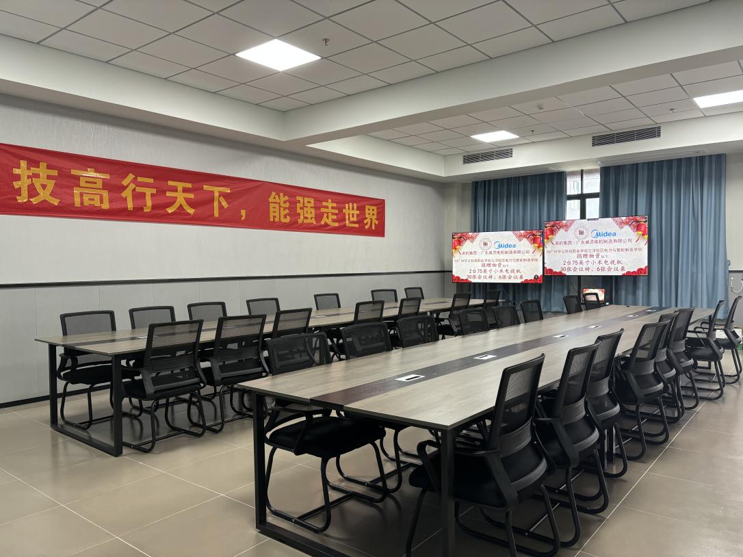 本次捐贈的技能大賽培訓(xùn)設(shè)備有兩臺75英寸小米電視機、六張大會議桌、三十張會議椅。