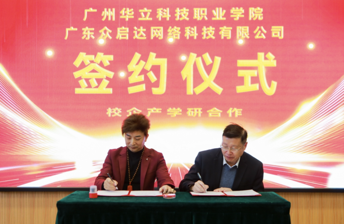 隨后,在與會嘉賓的見證下,藝傳學(xué)院副院長王焰安與廣東眾啟達網(wǎng)絡(luò)科技有限公司董事長于新輝簽署了合作協(xié)議,雙方握手合影,將儀式氣氛推向高潮。根據(jù)協(xié)議,校企雙方將在實習(xí)實訓(xùn)、就業(yè)指導(dǎo)、校外導(dǎo)師等多個領(lǐng)域展開深入合作。